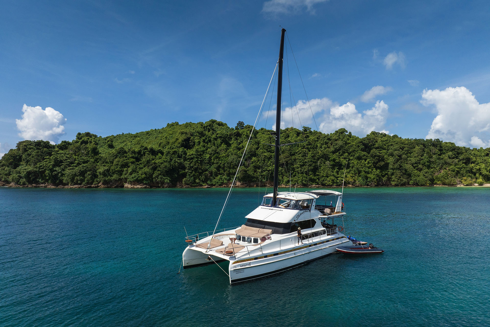 Our chef will offer you delicious Thai cuisine, and the hostess will take care of your wishes. There is also a professional masseuse on board who offers relaxing Thai massage (service for an additional fee). A captain with excellent knowledge of the water area, and a sailor watching the catamaran.